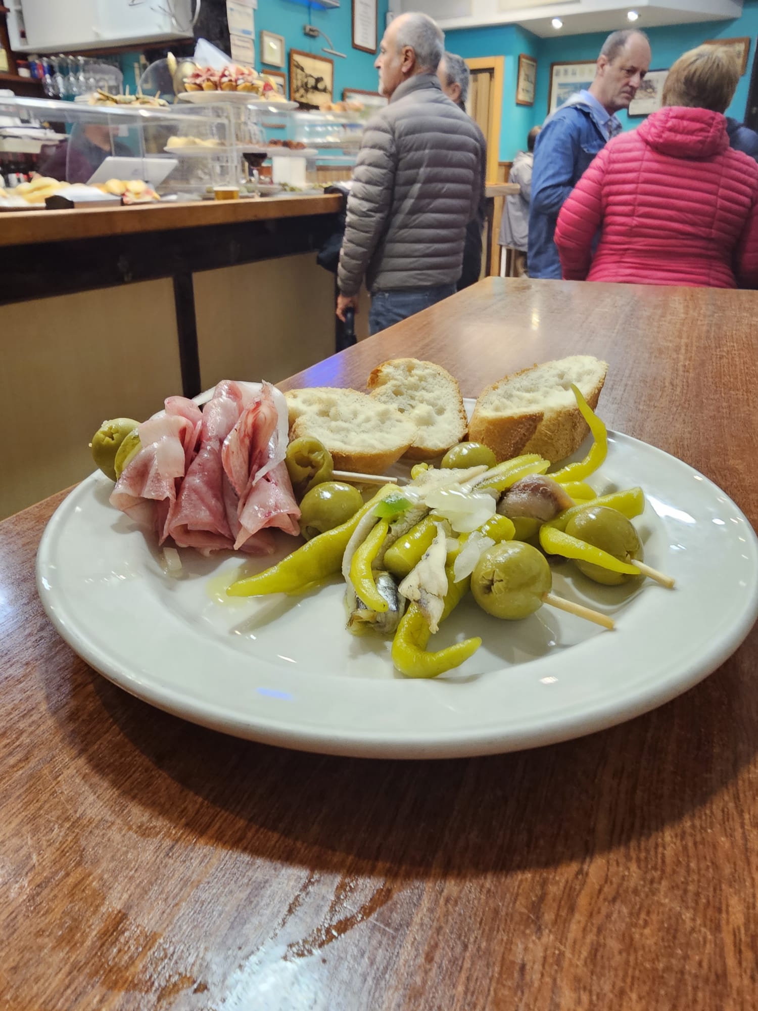 The Gilda—a simple yet legendary combo of anchovy, olive, and pickled guindilla pepper. Absolute perfection on a toothpick.