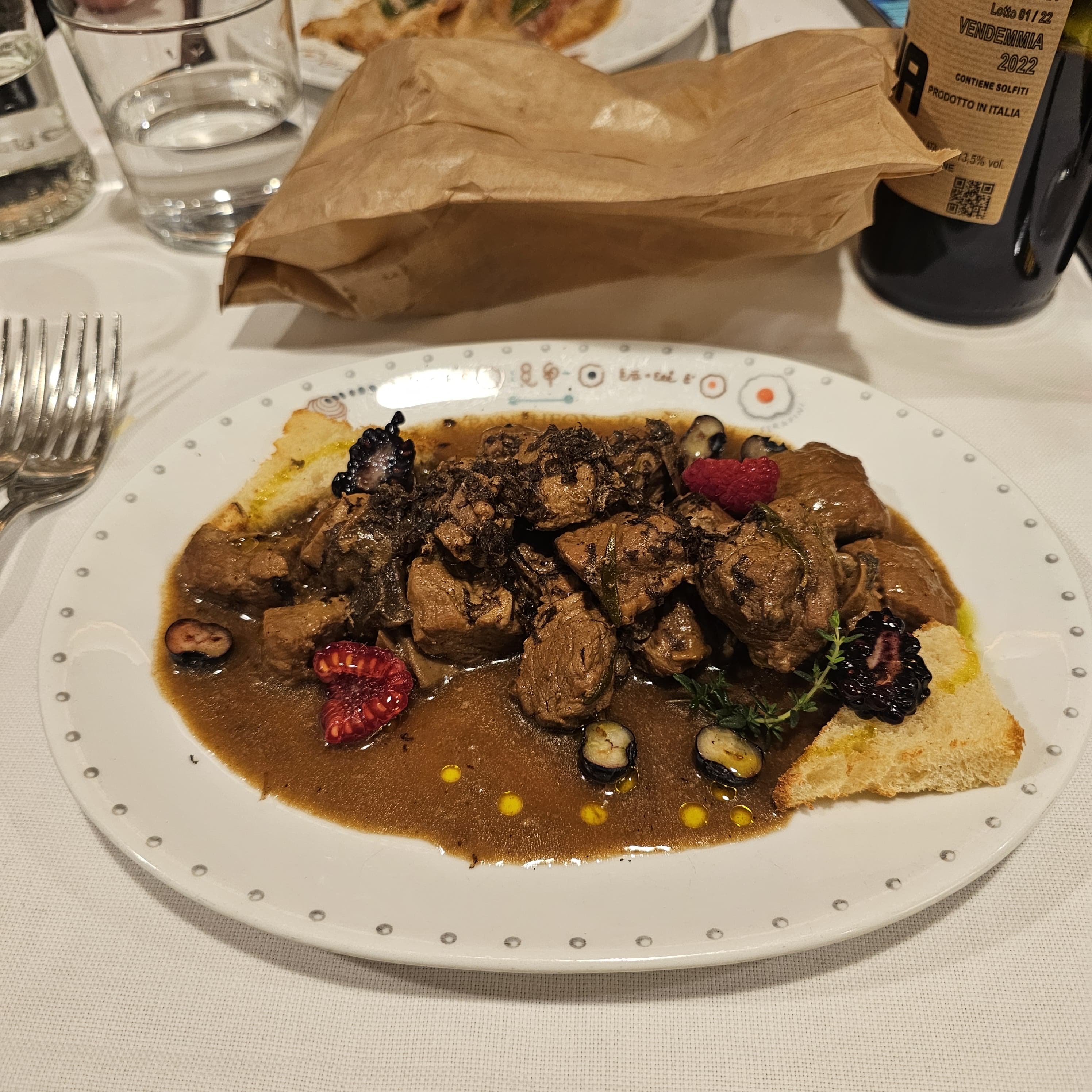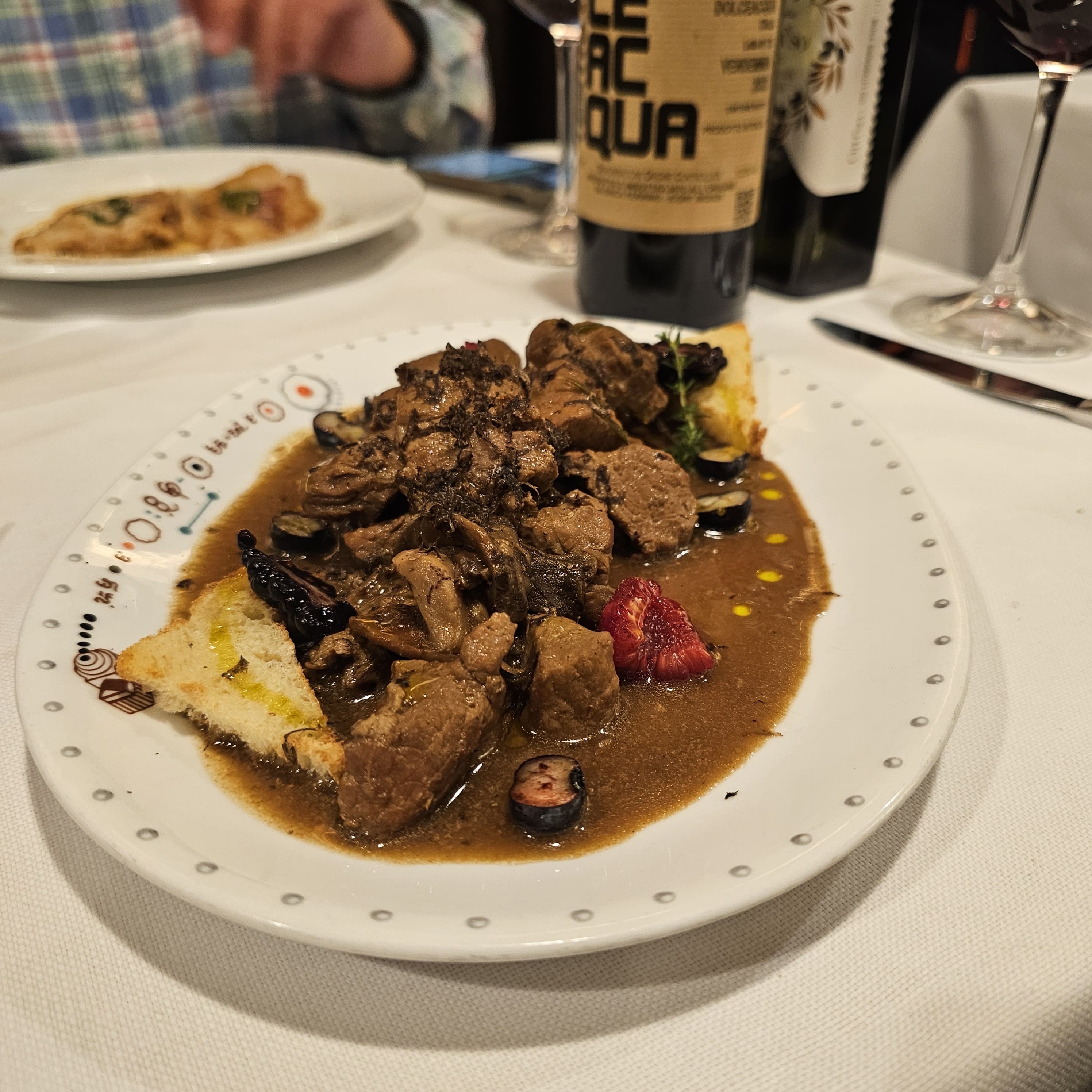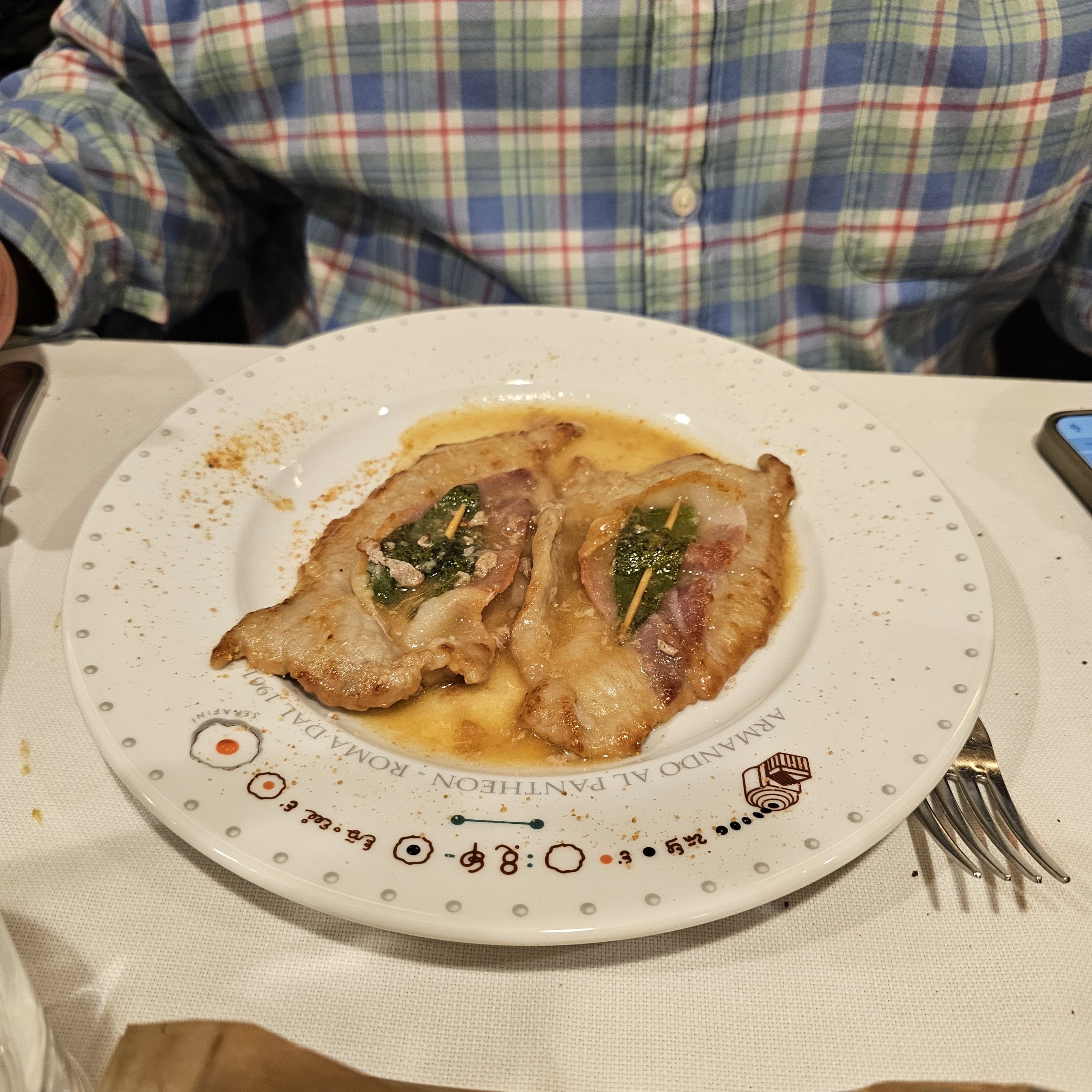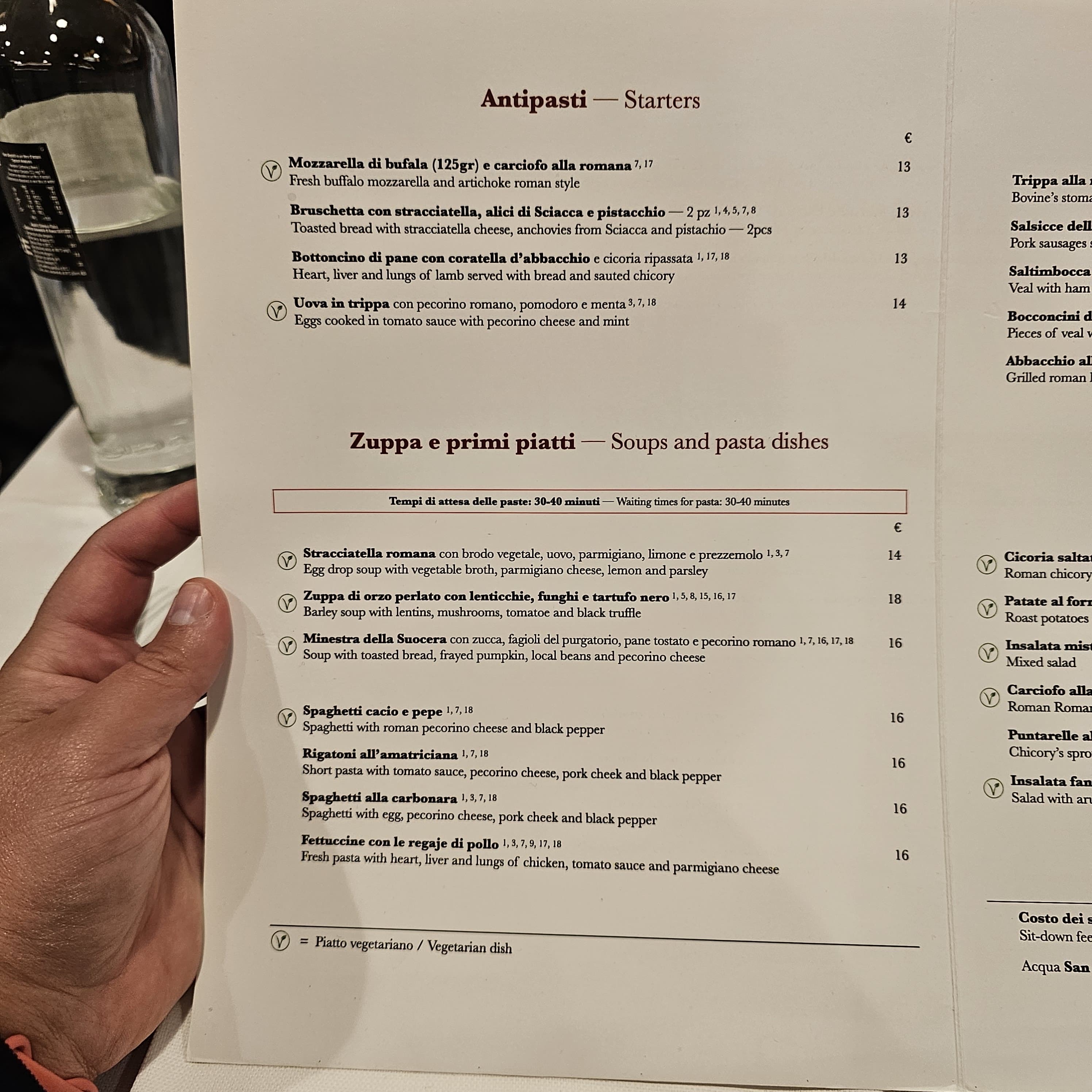 We go for: Spaghetti alla Carbonara, Vitello Saltimboca